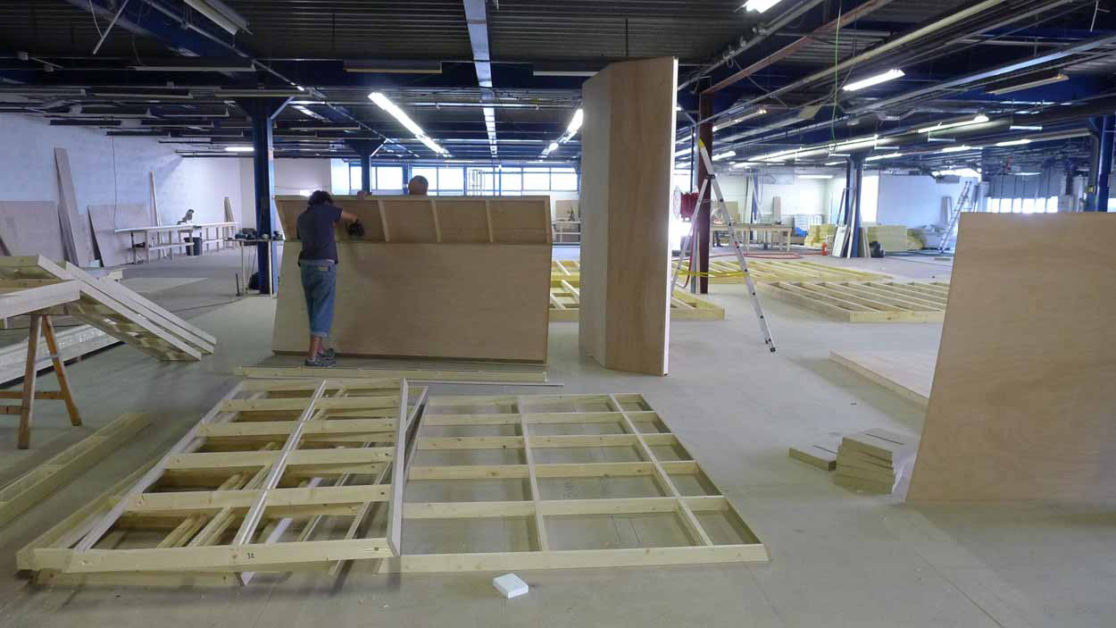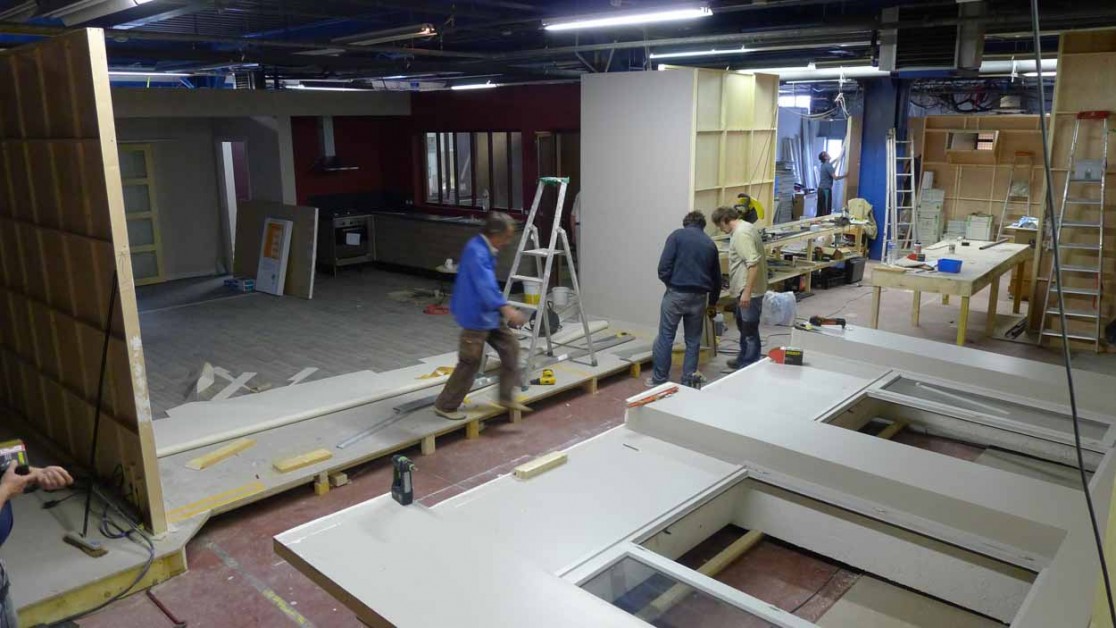 Création des deux décors principaux de la série dans un bâtiment industriel proche de Lyon: