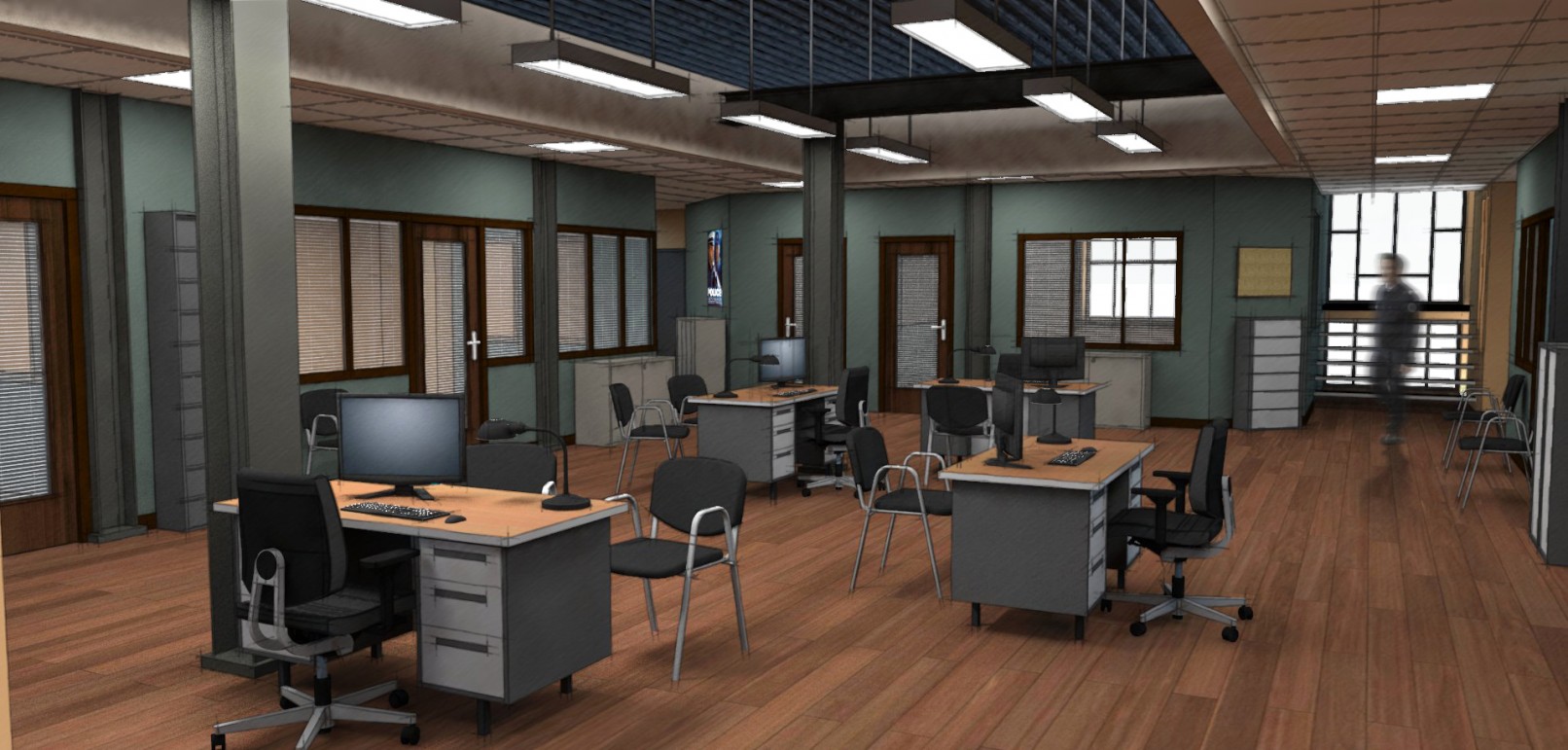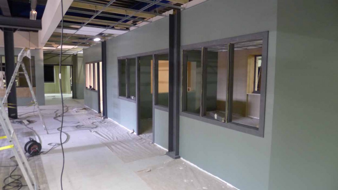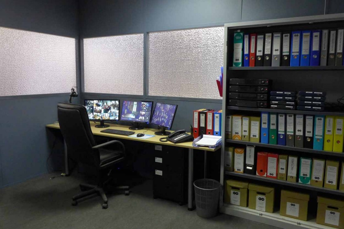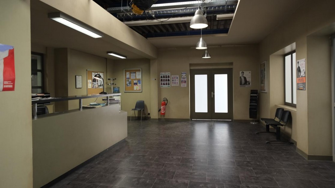 L’hôtel de police composé d’un open-space, de bureaux, d’un hall d’accueil et de cellules.