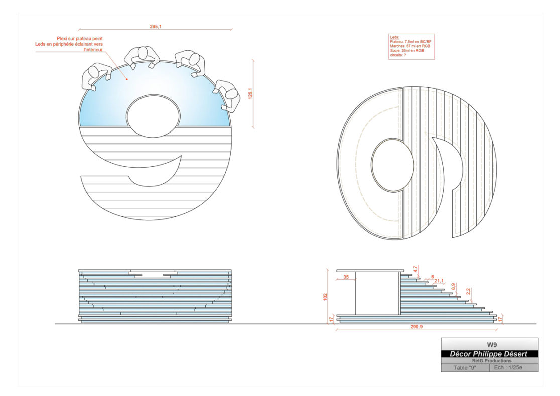 Quelques exemples d’éléments graphiques produits pour les différentes étapes de la création des décors.